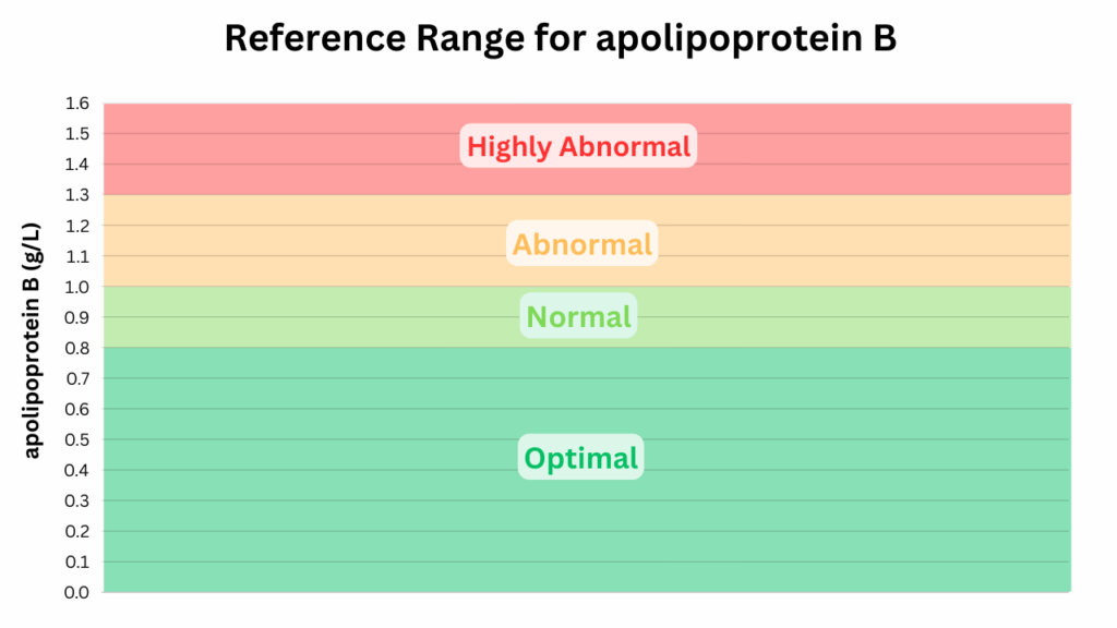 Here are a set of common reference ranges for interpreting your apolipoprotein B result: